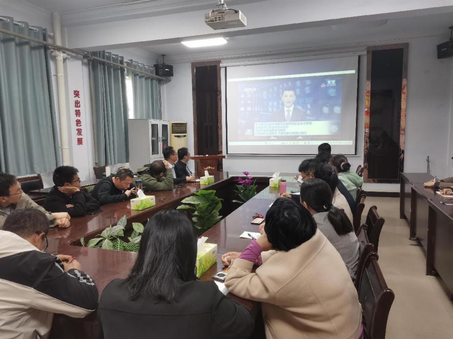 会上,全体教职工通过观看视频方式学习了习近平总书记在学习贯彻习近平新时代中国特色社会主义思想主题教育工作会议上的重要讲话精神。