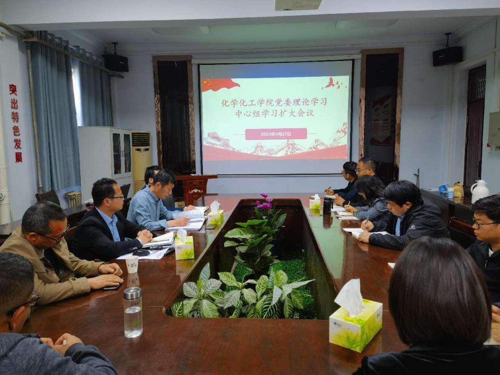 4月27日下午,化学化工学院党委在睢阳校区7号楼会议室召开理论学习中心组学习研讨扩大会议,学院党委理论学习中心组成员、学院主题教育领导组成员参加会议。会议由院党委书记李海涛主持。