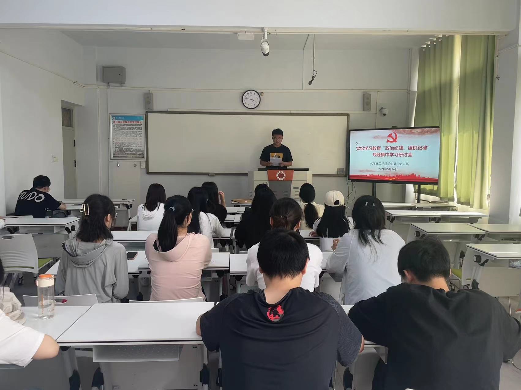 近期,化学化工学院各党支部开展党纪学习教育集中学习和专题研讨活动,进一步增强党员干部纪律意识和规矩意识,推动党纪学习教育走深走实。