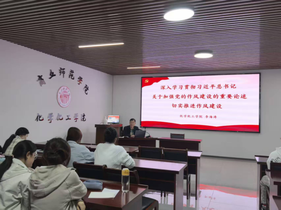 为深入学习贯彻习近平总书记关于加强党的作风建设的重要论述,切实推进学院作风建设常态化长效化,111日,化学化工学院分党校第57期入党积极分子培训第一讲在工科实训大楼B-309会议室进行。本次党课由学院党委书记李海涛主讲,全体入党积极分子参加学习。
