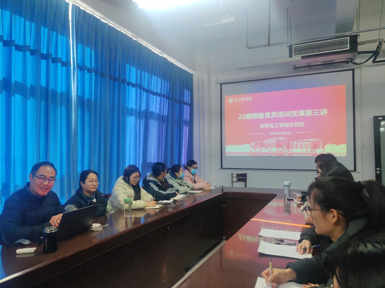 为持续深化预备党员理想信念教育,筑牢新时代青年党员的思想根基,125日中午,化学化工学院在实训楼B308会议室开展第22期预备党员第三次专题培训。学院副院长魏伟担任主讲,全体第22期预备党员参加学习。