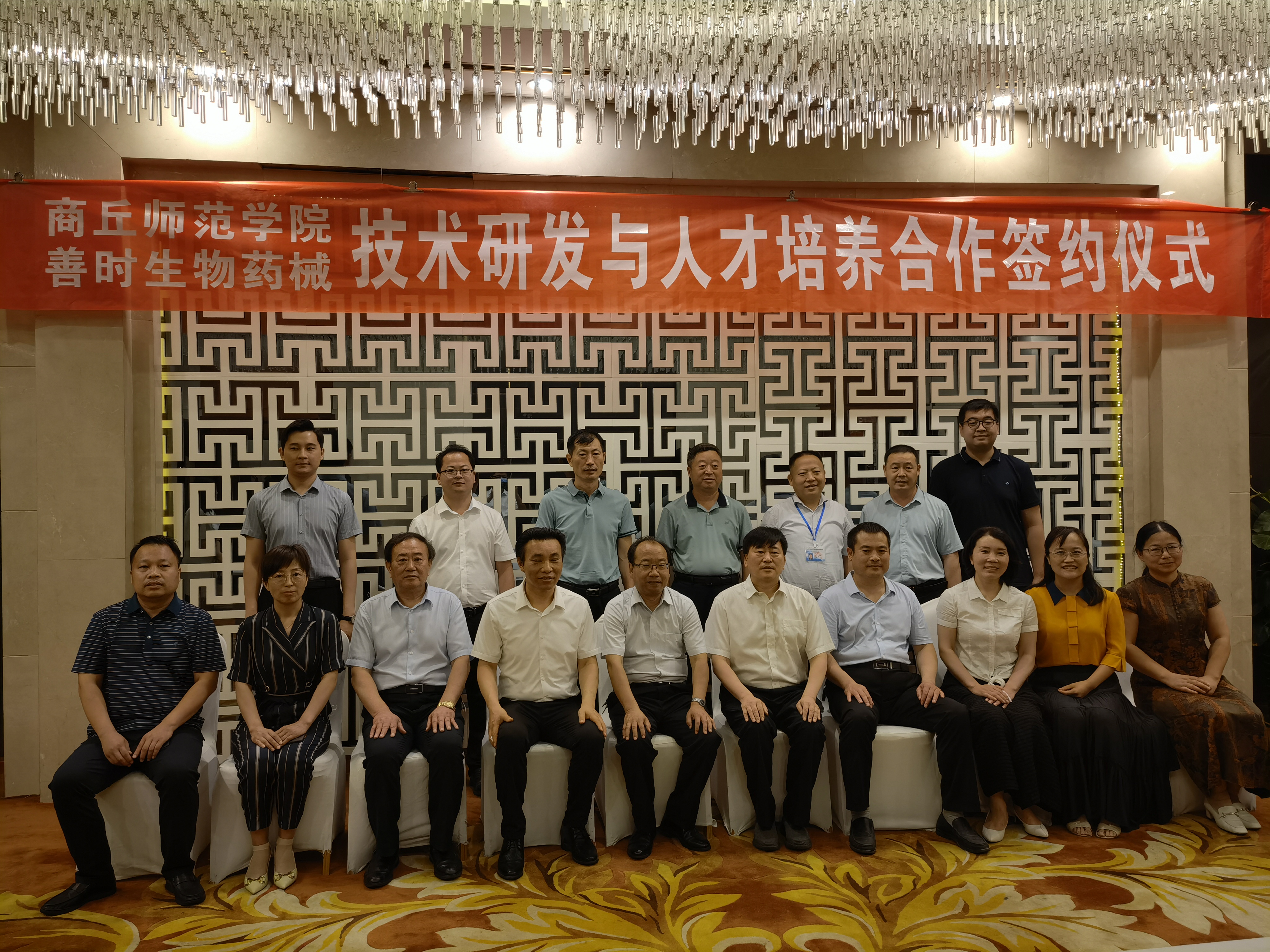 睢阳区政协主席任广瑜、副主席李彩霞、产业集区管委会常务副主任孟超、政协秘书长任子建、工业和信息化局局长彭义洲以及浙江善时生物药械(商丘)有限公司董事长边俊杰等同志陪同副校长郭文佳一行参观了展览室、生产线,边俊杰介绍了公司发展历程、主营产品、销售网络、研发团队等情况。