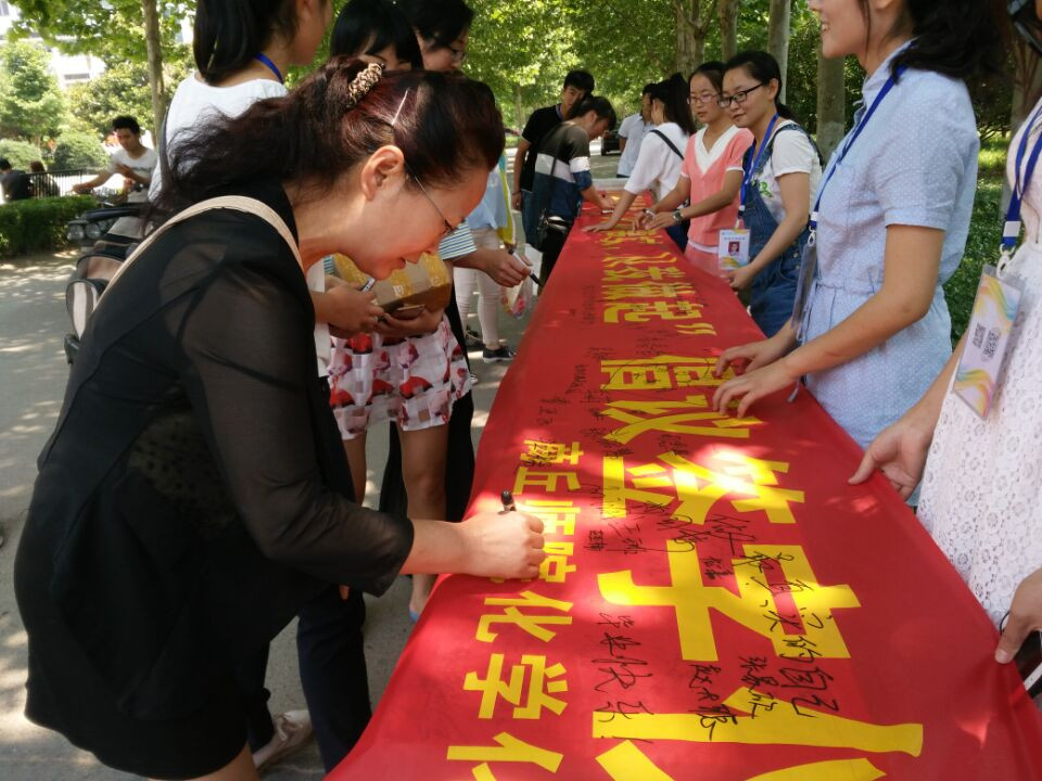 又是一年毕业季,我们有太多的不舍,也有太多的故事,此刻早已无法用言语表达。为了促进树立文明离校之风,深化文明离校意识,提高毕业生文明离校行为,留下文明标榜,为以后的毕业生文明离校树下榜样,永利23411集团于5月24日在文化路校区图书馆门前开展了“文明离校 从我做起”倡议签字仪式活动,永利23411集团副院长刘瑛、团总支书记李龙梅参加了此次签字活动。