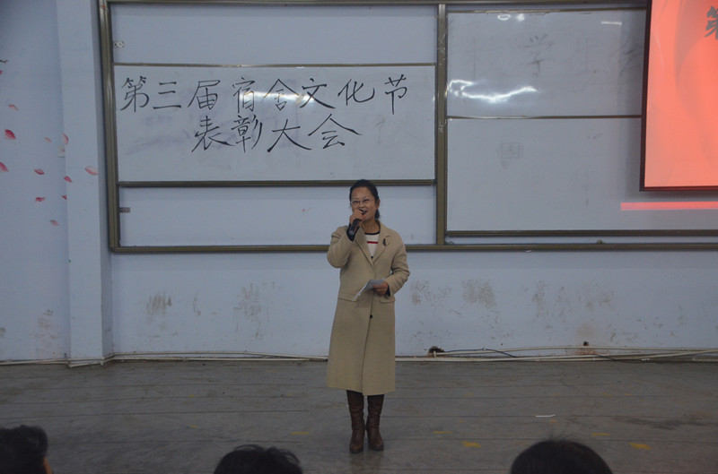 大会以一段精彩的“宿舍文化节”主题视频开始。视频播放结束后,同学们出演的小品点燃全场气氛,赢得观众的阵阵掌声。之后四位学生饱含热情、感情充沛的宿舍宣言,进一步点明了此次活动的主题。接下来便是备受期待的颁奖仪式,由永利23411集团党总支副书记刘瑛、团总支书记李龙梅及团总支·学生会主席张荣缘分别为十佳宿舍、微视频制作大赛、宿舍装饰大赛获奖宿舍颁奖。在颁奖过后,话剧表演及歌曲串烧再次将现场气氛推向高潮,随后播放的一段温馨的宿舍生活微视频,展现了宿舍的温暖。最后由院党总支副书记刘瑛为本次活动点评,她提出希冀,希望大家能为创建优美、温馨、安全和谐的宿舍而努力,同时也希望可以通过此次大会提升永利23411集团学生的文明素养。