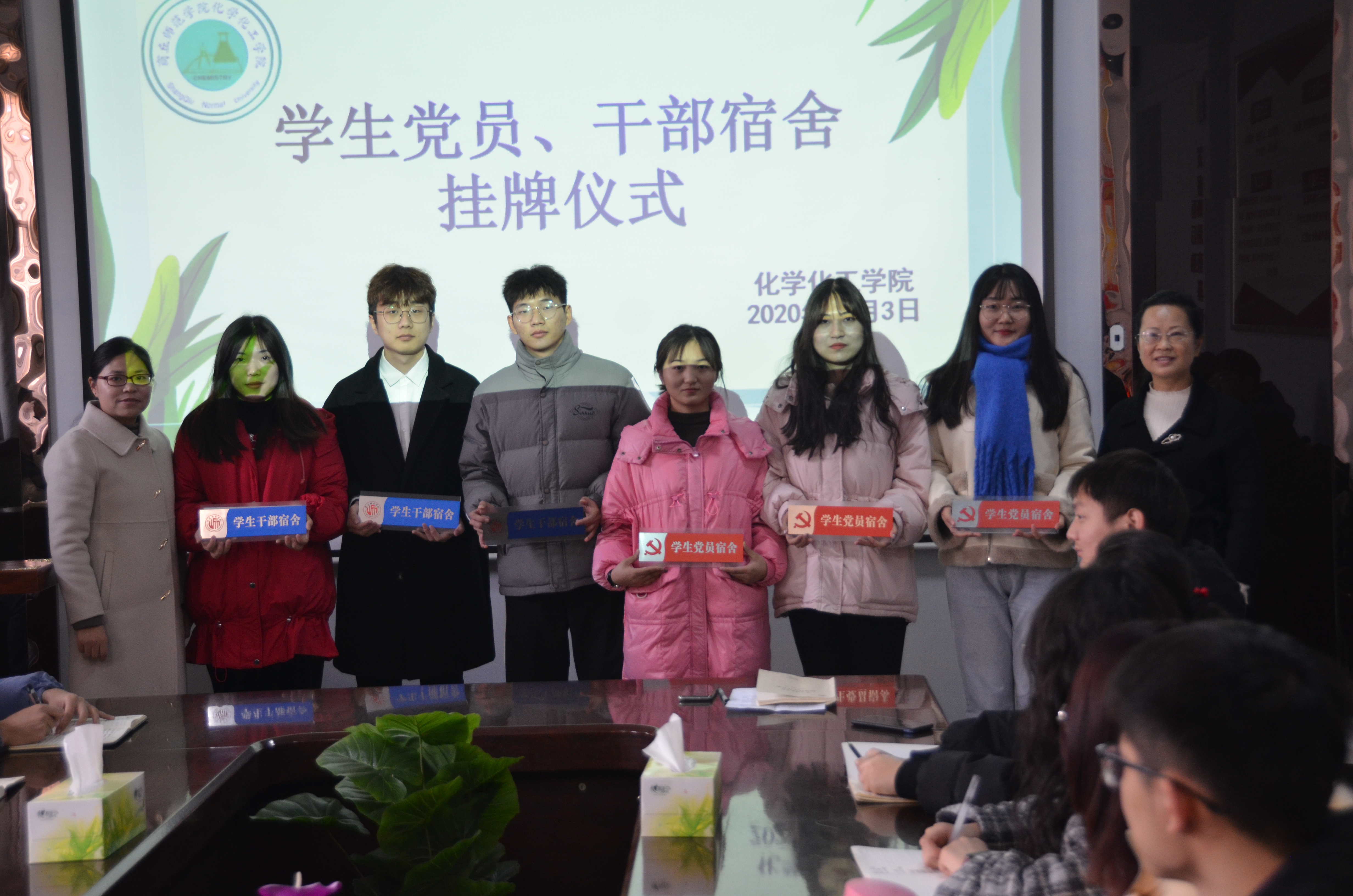 充分发挥学生党员、学生干部的先锋模范作用和先进典型的带动示范作用,进一步牢固树立党员意识,时刻铭记党员、干部身份,促进宿舍环境提升,2020年12月3日中午,化学化工学院于睢阳校区7号楼会议室举行学生党员、学生干部宿舍挂牌仪式。本次会议由党总支副书记刘瑛,团总支副书记郭家瑞出席,学生党员、学生干部代表及学生会各部门成员参加。
