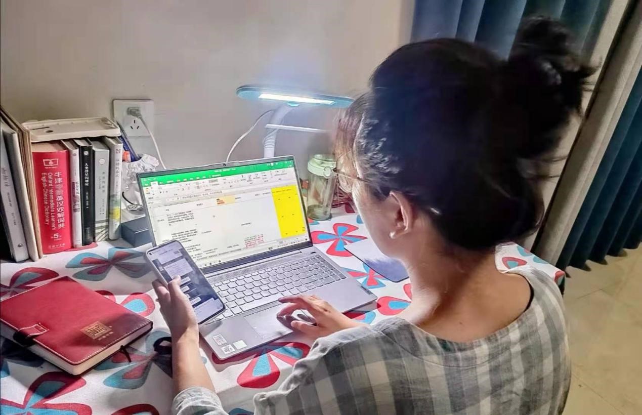 18级新能源科学与工程专业的于静甜是一名线上志愿者,在志愿者群中进行搜集、核实求助信息,并根据群内发出的通知、模板以及步骤去高效完成任务。她通过发短信或打电话的方式核实求助信息之后,便将信息发送给群主审核,审核过关之后即可接下一个任务,从而帮助更多的受灾群众。