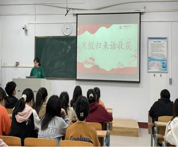 浮娇阳首先从加强理论武装、做一个合格的共产党员的三个标准、当前新形势下合格党员的标准以及如何才能成为一个合格的共产党员四方面带领支部成员学习了成为一名共产党员的要求,激励同学们积极向党组织靠拢;之后,邀请参加寒假“三下乡”社会实践的同学,分享红色寻访、文化宣讲、志愿服务等实践活动中的心得与感悟;最后组织同学们观看《辉煌中国》第六集(《开放中国》),该片反映了党的十八大以来,中国经济发展取得的伟大成就,使支部成员看到日益强大的祖国,让团员青年越来越自豪,更加有底气。
