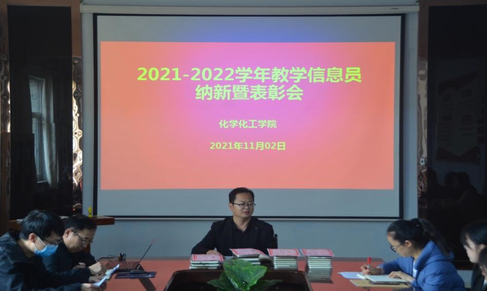 为进一步加强教学过程管理、提高课堂教学质量,充分发挥学生在教学环节中的积极作用,11月2日,化学化工学院于7号楼学院会议室召开了2021-2022学年学生教学信息员纳新暨表彰会。副院长王涛、学生工作办公室副主任史展、教学办主任胡春华、副主任徐星出席会议,全体学生信息员参与会议。