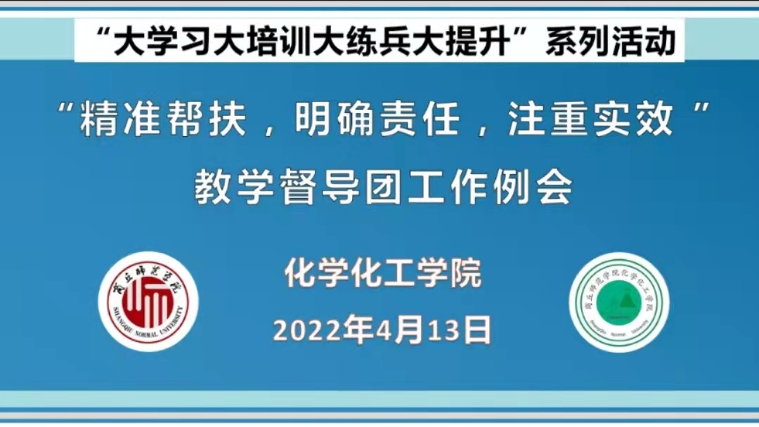 为了实施教学质量监控,持续促进教师教学理念和教学方法的改革与创新,提升课堂教学质量,4月13日,化学化工学院召开“精准帮扶、明确责任、注重实效”教学督导团工作例会,会议由副院长王涛主持。