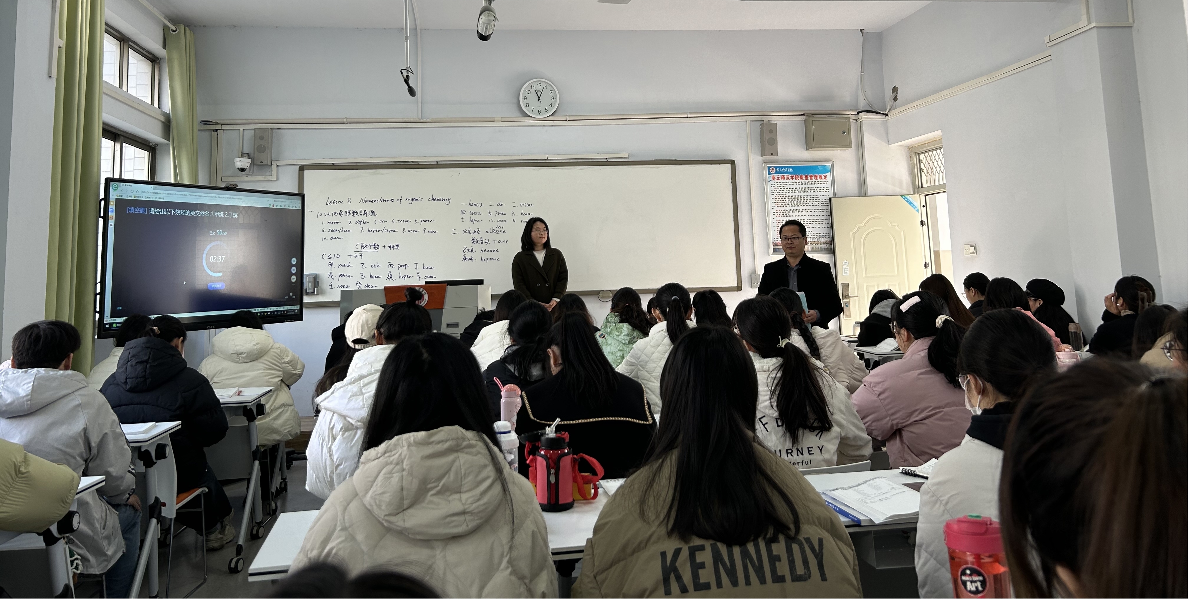 11月27日上午第3节,化学化工学院杨晓燕老师的《专业外语》公开课在1号教学楼310教室进行。副院长王涛、院督导团成员以及近两年新进无课老师现场观摩。